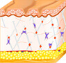 Dijagram s desne strane prikazuje šta se dešava s kožom kada je proizvodnja kolagena veća. Kolagen obezbjeđuje čvrstoću kože. To je prirodni protein koji obezbjeđuje strukturalnu potporu našem tijelu. Kako starimo, naše tijelo proizvodi manje kolagena. Vidimo da naša koža gubi sjajnu i energičnu mladolikost kako se pojavljuju prve bore. Obnovom nivoa kolagena u koži pomažemo da se smanji primjetnost starenja i eliminišemo postojeće bore.